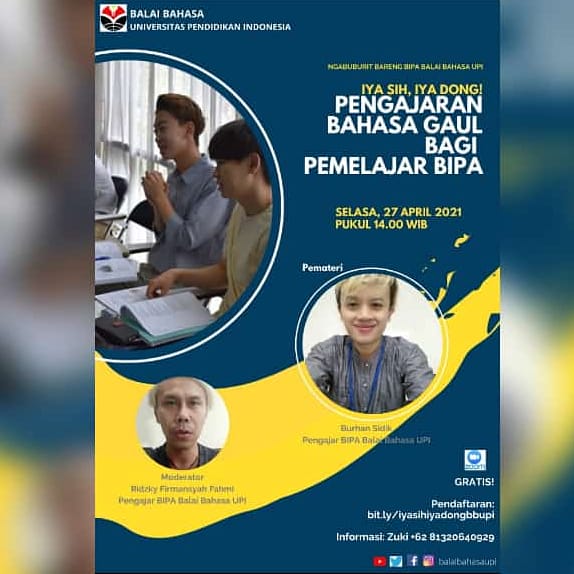 Temukan jawabannya di Seri Ngabuburit bareng BIPA Balai Bahasa UPI. Selasa, 27 April 2021, pukul 14.00 WIB.