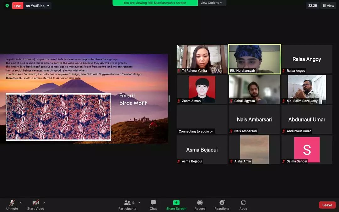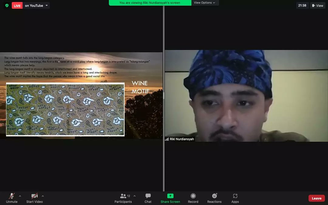 Kunjungan dosen tamu Bapak Riki Nurdiansyah di kelas BIPA Balai Bahasa UPI. Dalam pertemuan kali ini membahas tentang sejarah dan berbagai macam motif Batik yang ada di Indonesia. Pembelajaran kelas BIPA disiarkan secara langsung di saluran YouTube Balai Bahasa UPI: youtu.be/qP0kZiDI9-4