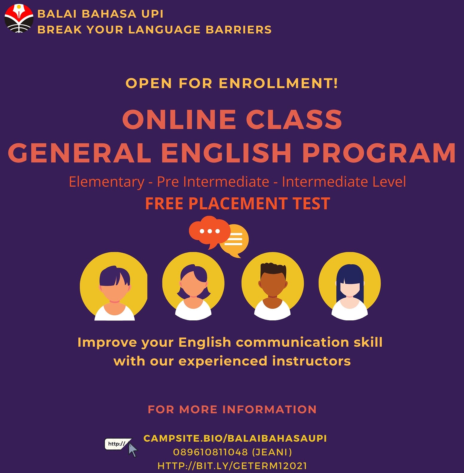 Balai Bahasa Universitas Pendidikan Indonesia membuka pendaftaran kelas online *General English Program*.